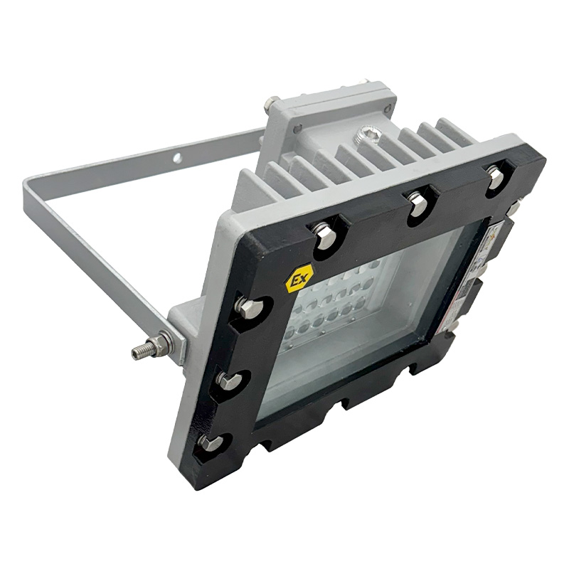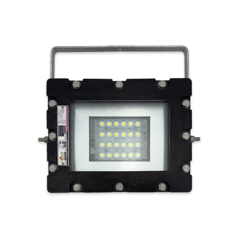 Projetor à prova de explosão e à prova de ingresso de poeiras combustíveis, fabricado em alumínio fundido ou aço inox 304, 316 3 316L (sob consulta) vidro plano temperado, conjunto fornecido com placa de LED´s de alto desempenho e durabilidade até 100W, fornecido com invólucro segurança aumentada, prensa-cabo e suporte tipo ”U” para fixação e ajuste vertical e/ou horizontal. Utilizado na iluminação de áreas classificadas como Zona 1, 2, 21 ou 22, grau de proteção IP66. TPRW37B