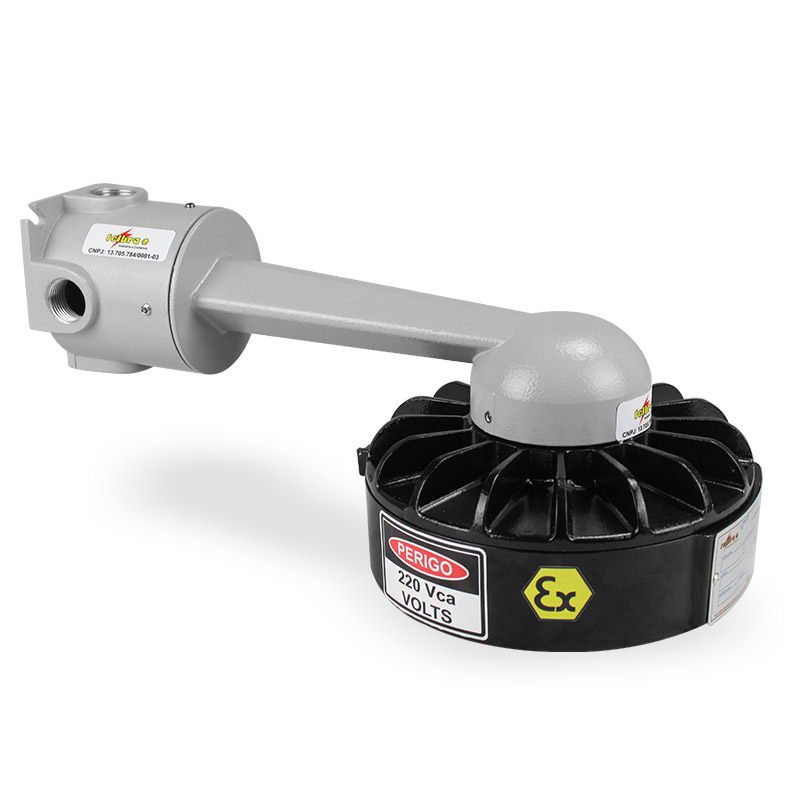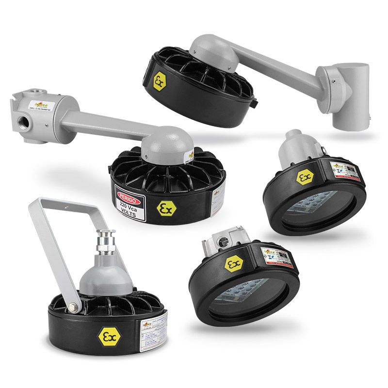 Luminária Ex db “à prova de explosão” Luminária Ex eb “segurança aumentada” Luminária Ex tb “à prova de ingresso de poeiras combustíveis” Corpo em alumínio ou inox Difusor em vidro temperado Fonte de luz em LED´s ONBOARD Fornecido com involucro segurança aumentada com bornes Ex e Pintura eletrostática na cor cinza claro Alimentação 12/24Vcc ou 127,220Vca Dois tamanhos diâmetro 140mm ou 200mm Potencias 10/20/25/30/40/50/60/80/100/120 Watts Fluxo luminoso 2.800lm a 11.500lm Nível de segurança Db e Gb Aplicação Zona 1; 2; 21 ou 22 Grau de proteção IP66 / IP66W CT 5500K + 500