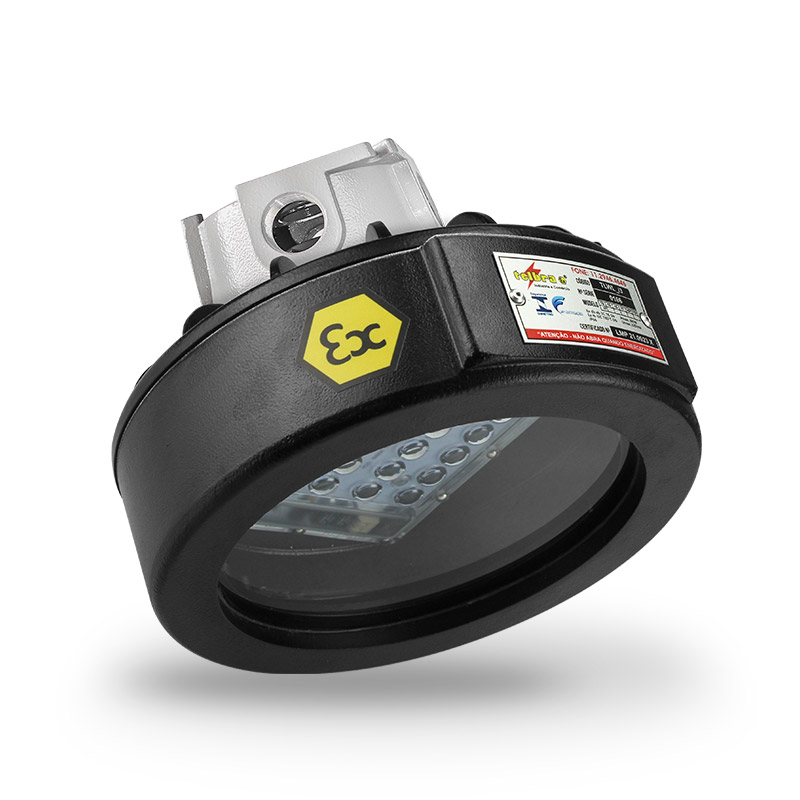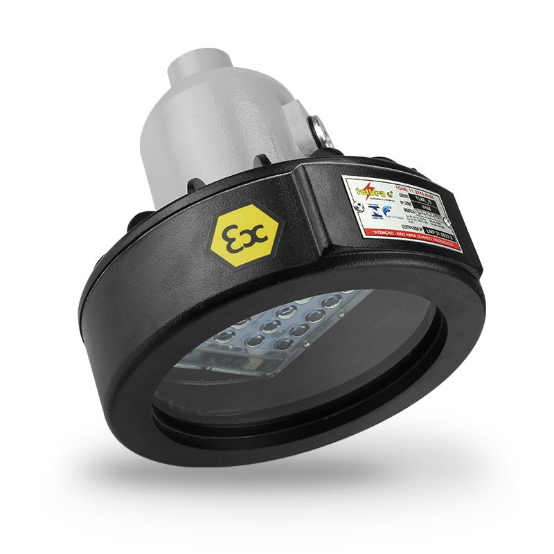 Luminária Ex db “à prova de explosão” Luminária Ex eb “segurança aumentada” Luminária Ex tb “à prova de ingresso de poeiras combustíveis” Corpo em alumínio ou inox Difusor em vidro temperado Fonte de luz em LED´s ONBOARD Fornecido com involucro segurança aumentada com bornes Ex e Pintura eletrostática na cor cinza claro Alimentação 12/24Vcc ou 127,220Vca Dois tamanhos diâmetro 140mm ou 200mm Potencias 10/20/25/30/40/50/60/80/100/120 Watts Fluxo luminoso 2.800lm a 11.500lm Nível de segurança Db e Gb Aplicação Zona 1; 2; 21 ou 22 Grau de proteção IP66 / IP66W CT 5500K + 500