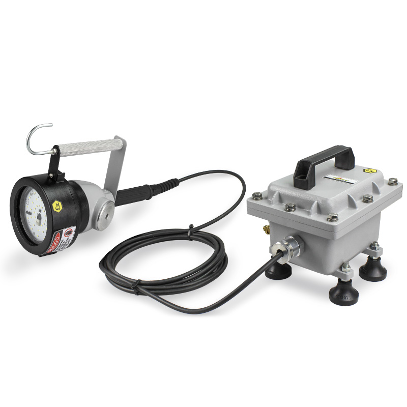 Sistema de iluminação para áreas confinadas em locais com atmosferas explosivas. Zona 1, 2, 21 ou 22, Ex db IIB T6 GB // Ext b IIIC T85ºC Db, IP66. Atende normas ABNT NBR IEC 60079-0; 60079-1; 60079-31; 60529. Conjunto composto por: Luminária ou Projetor Ex db até 50W 24Vcc; Invólucro Ex db contendo: Fonte 220Vca-24Vcc; Disjuntor; Prensa-cabos e cabos PP entre luminária/ projetor e invólucro; Prensa-cabo e cabo PP entre Invólucro e plugue (não fornecido). Pode ser fornecido com plugue Ex sob encomenda. O invólucro com equipamento auxiliar fornecido com alça e pés antivibratórios.