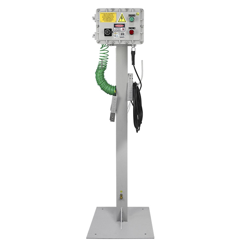 Sistema de monitoramento de aterramento Atende áreas classificas Zona 1, 2, 21 ou 22 Escoa a eletricidade estática Montado em painel Ex d “à prova de explosão” Disponibiliza um contato NANF Fornecido com garra e cabo PP preto Fornecido com cabo para aterramento na cor verde e garra Fornecido com terminal para aterramento externo Alimentação 127-220Vca Interruptor de liga/desliga Leve e compacto Indicador/sinaleiro Ex d verde (LIBERADO) Indicador/sinaleiro Ex d vermelho (FALHA) Marcação para gases inflamáveis: Ex db IIB T6 Gb Marcação para poeiras combustíveis: Ex tb IIIC 85 ºC Db Grau de proteção IP66 / IP66W