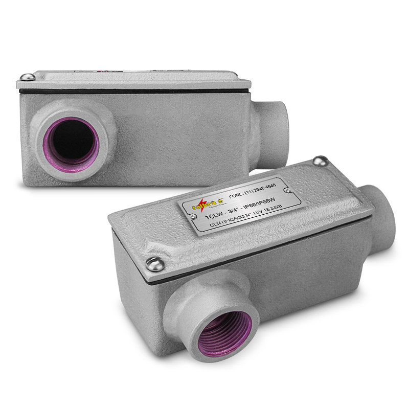 Conduletes com corpo e tampa fabricados em Ferro Fundido Nodular (Galvanizado a Fogo). Tampa fixada ao corpo através de parafusos de aço. Junta de vedação em neoprene. Galvanizado a fogo. Aplicado com passagem e ligação de condutores elétricos. Fornecido com entradas de Ø 1/2” a 4”, com roscas BSP ou NPT.