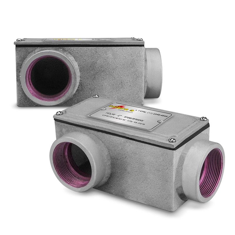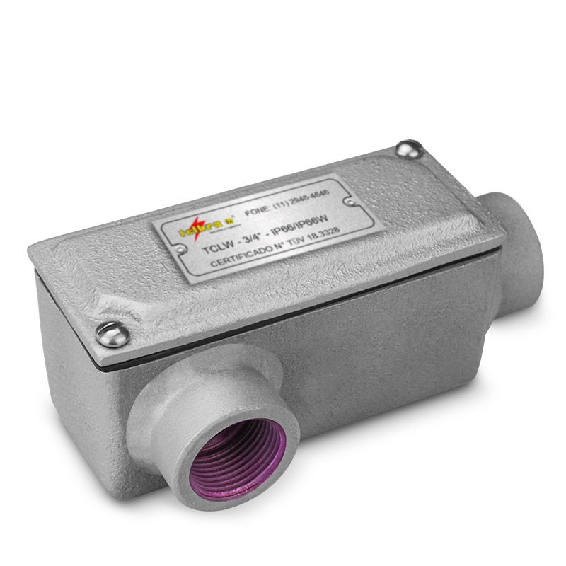 Conduletes com corpo e tampa fabricados em Ferro Fundido Nodular (Galvanizado a Fogo). Tampa fixada ao corpo através de parafusos de aço. Junta de vedação em neoprene. Galvanizado a fogo. Aplicado com passagem e ligação de condutores elétricos. Fornecido com entradas de Ø 1/2” a 4”, com roscas BSP ou NPT.