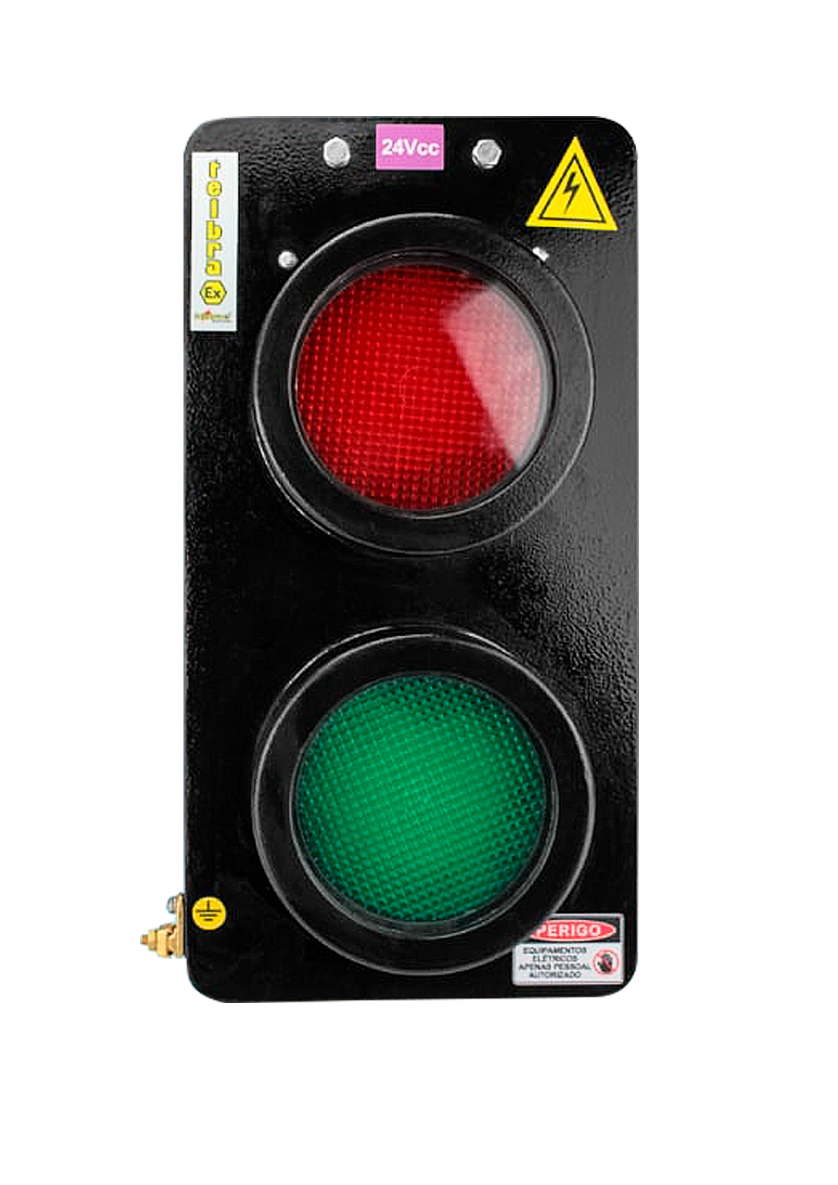 Características: O invólucro para montagem de semáforo TLWL, modelo SEMEX, com tipo de proteção Ex db (à prova de explosão), Ex eb (Segurança aumentada), Ex tb (à prova de ingresso de poeiras) para atmosferas explosivas e áreas industriais, apropriado para uso em Zona 1, 2, 21 ou 22, o semáforo possui a montagem de até 3 fontes luminosas em LED (TLWL), em diversas tensões. Aplicação: Utilizada em áreas classificadas, onde haja risco de explosão como indústrias químicas, petroquímicas, farmacêuticas, processamento de alimentos, tintas e vernizes, armazéns de materiais inflamáveis e poeiras combustíveis.