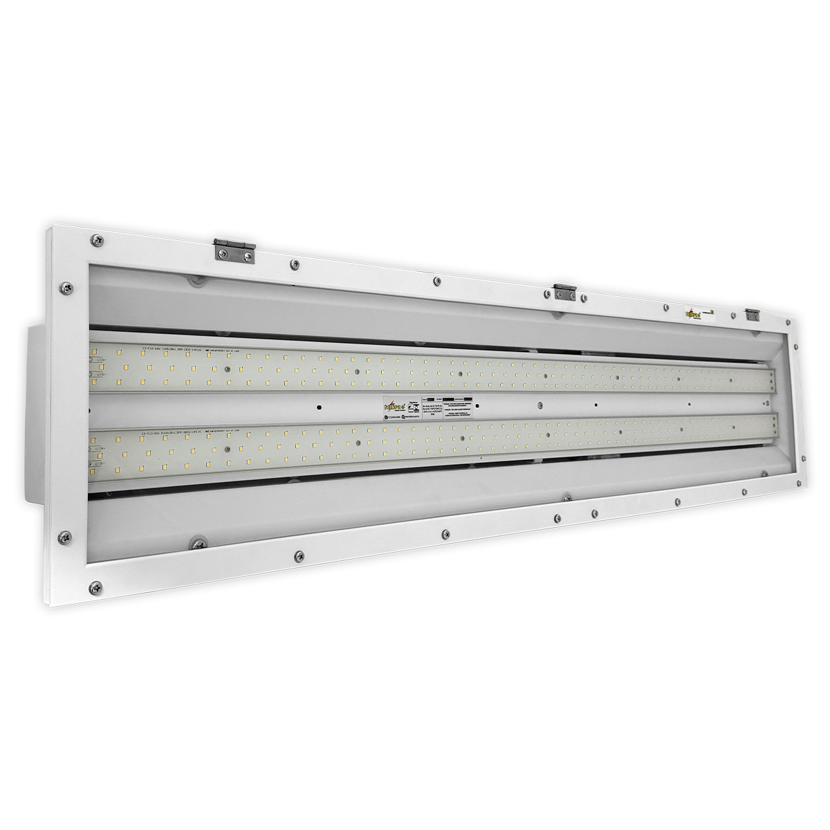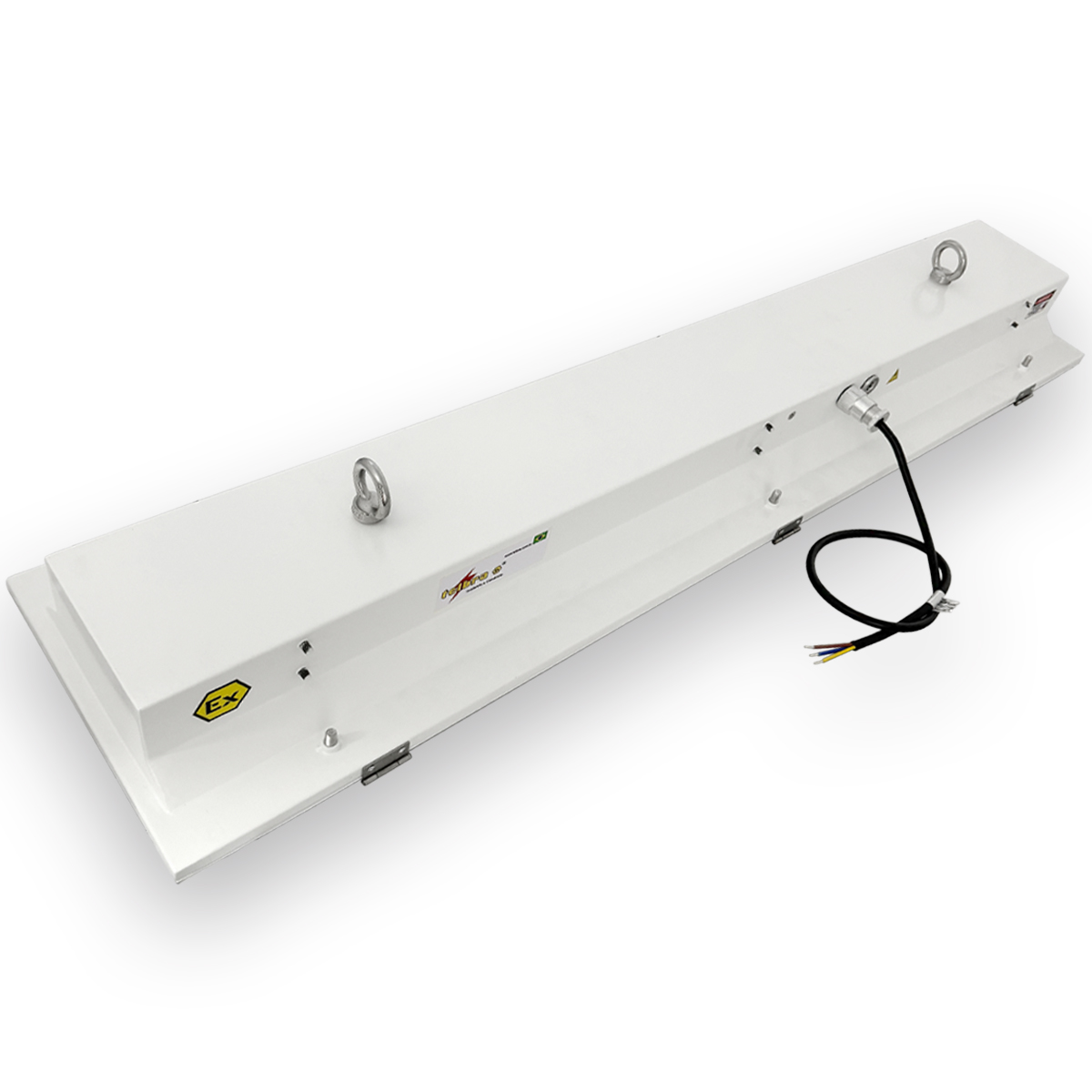 Características: Luminária de Embutir Fitas de LED, é uma luminária com diversos tipos de proteção Ex, sendo elas: Ex "e" (segurança aumentada), Ex d (a prova de explosão), Ex "m" (proteção de equipamento por encapsulamento) e Ex "t" (proteção de equipamentos contra ignição de poeira por invólucros). É composta por tampa com vidro, corpo de aço inoxidável 316, com acabamento em pintura eletrostática na cor branco.
