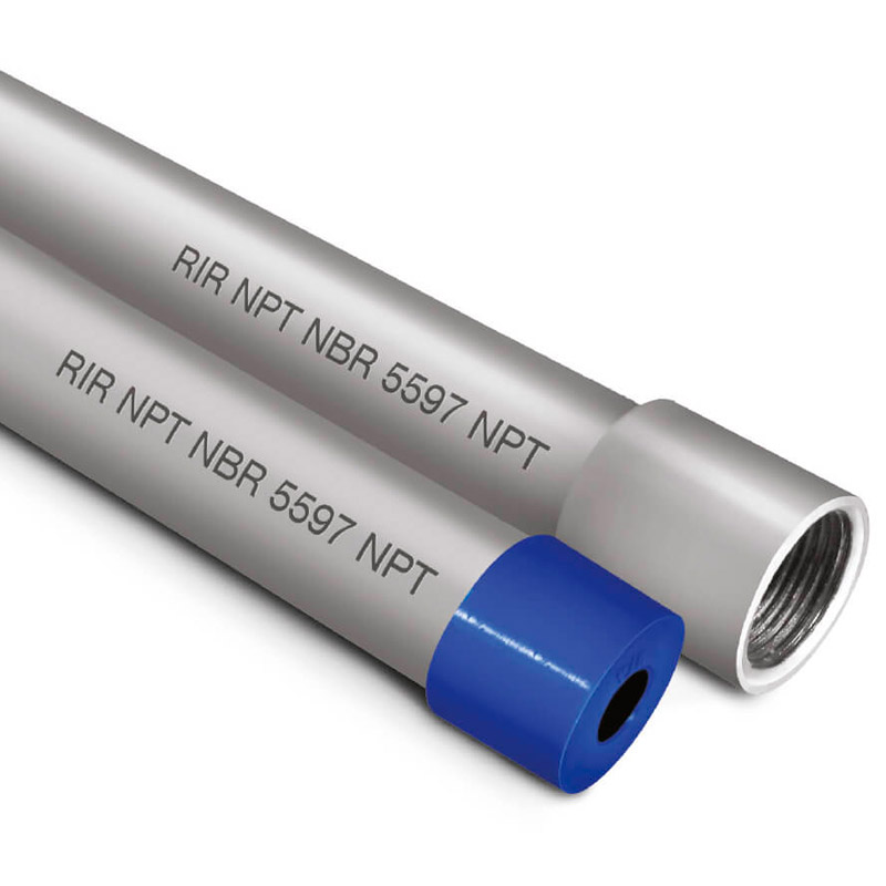 Eletroduto pesado, apropriada para instalações elétricas em áreas classificadas, fabricada em alumínio, aço carbono galvanizada (RR) rebarba removida ou aço inox. Fornecida com uma luva em uma extremidade e um protetor de rosca na outra extremidade em barras de três metros, de ½” a 4” com rosca NPT ou BSP. Utilizado na passagem de fios e cabos elétricos. Atende normas ABNT NBR 5597 (Rosca NPT) ou ABNT NBR 5598 (Rosca BSP).