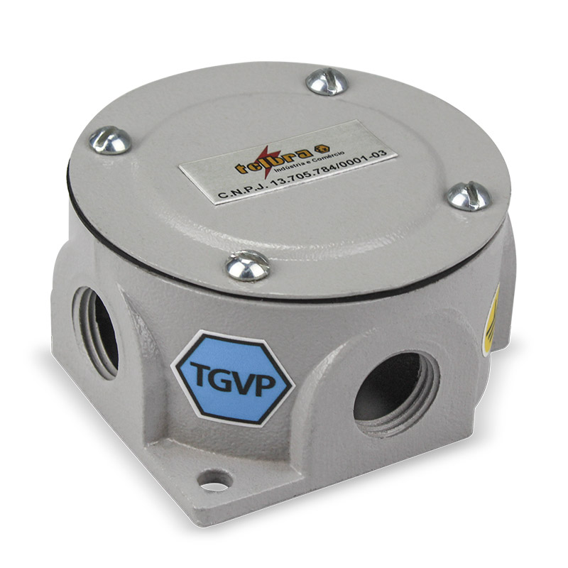 Características: Caixa de passagem ou ligação para áreas industriais, grau de proteção IP66, IP66W, redonda com tampa f ixada por parafusos ao corpo, fabricada em alumínio fundido com baixos teores de ferro e cobre, fornecidas em 6 formatos e 3 tamanhos conforme tabela, com um terminal de aterramento, com roscas NPT ou BSP. Junta de vedação em Neoprene/EPDM, . Aplicação: Indicada para passagem de condutores elétricos em áreas com umidade, gases e vapores não inflamáveis